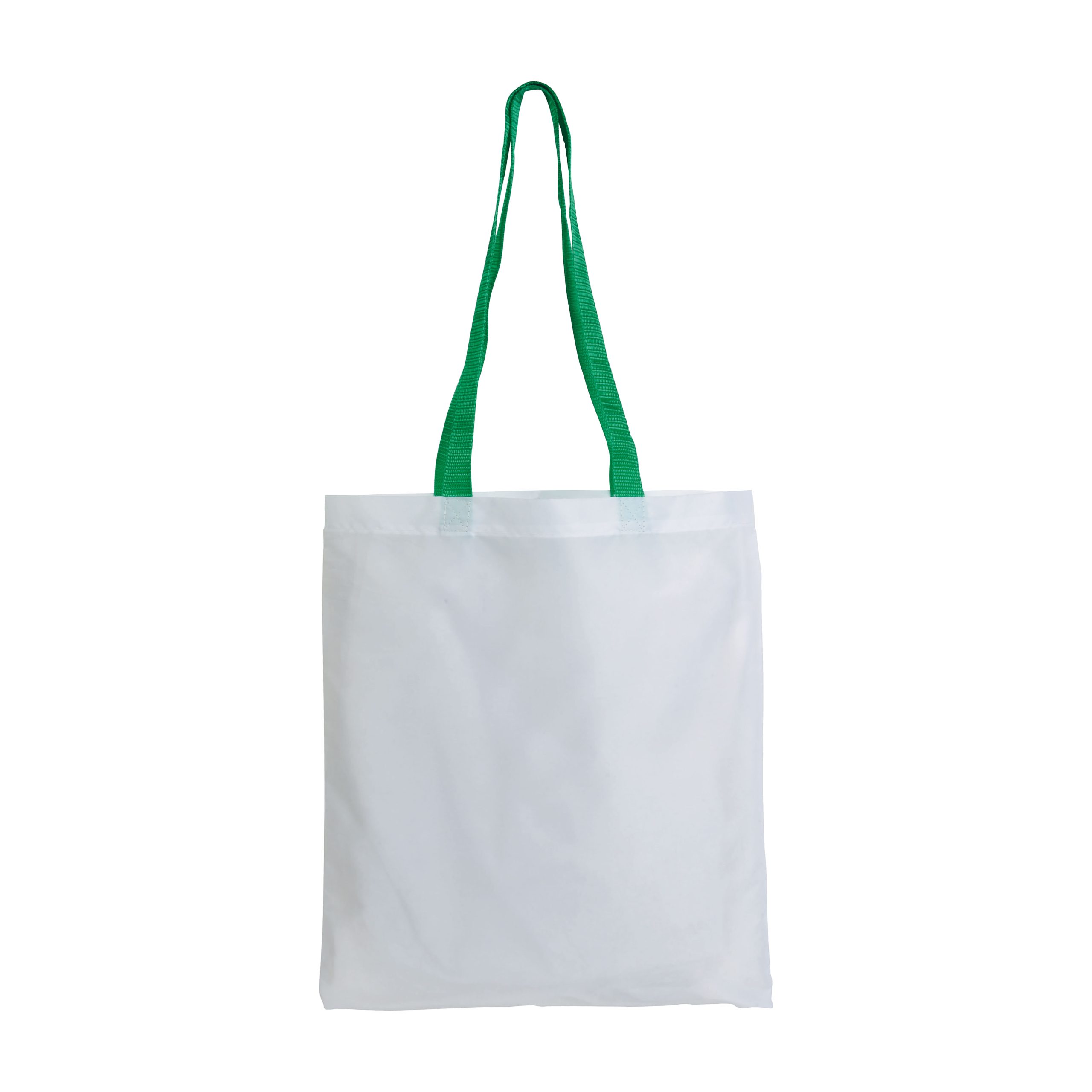 Shopper bianca in poliestere, manici lunghi colorati