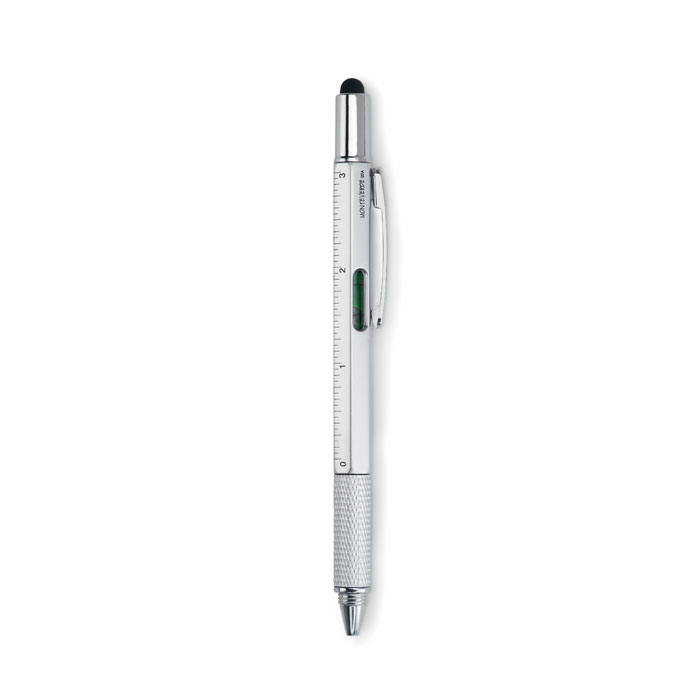 Penna in ABS con righello, livella, cacciavite e punta touch. Refill nero.